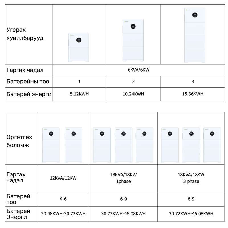 Өргөтгөх боломжтой модуль дизайн – 5.12kWh → 15.36kWh хүртэл