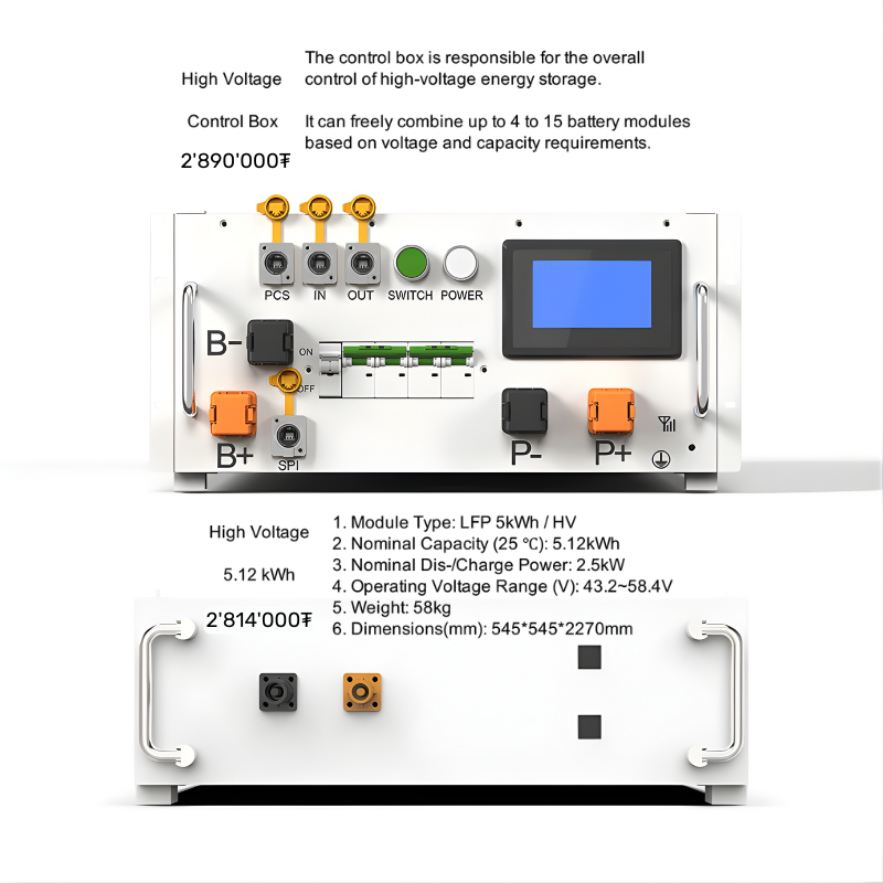 HV (High Voltage) ESS (Energy Storage System) — эрчим хүчийг хуримтлуулж хадгалах батерей хангамжийн систем юм. High Voltage Controller Box-д хамгийн багадаа 4 ширхэг батерейг холбох бол, хамгийн ихдээ 15 ширхэг батерейг цуваа холбох боломжтой. Нарны систем, нөөц цахилгаан гаргалт зэрэгт ашиглагдах зориулалттай Li-ion/LiFePO4 төрлийн 100 Ah багтаамжтай эрчим хүчний батерей юм. Энэ нь цахилгаан хэрэглээ өндөр үйлдвэр, үйлчилгээ, үйлдвэрийн цахилгаан хангамжийн системд илүү тогтвортой цахилгаан гаргах, илүүц энерги хадгалахад тохиромжтой инженерийн шийдэл болдог.