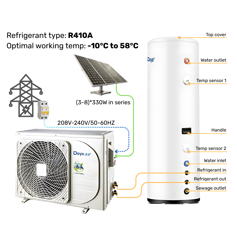 бүтээгдсэн Hybrid AC/DC нарны агаар ус халаагч нь халуун орны уур амьсгалд
