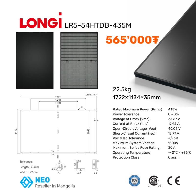 Одоогийн байдлаар үндсэн загварууд нь хэрэглэгчийн хэрэгцээ, хэрэглээний хувилбарт суурилсан хос шилэн 54 эсийн хувилбарууд юм. Хос шилэн загвар LR5-54HTDB нь 435Вт хүртэлх хүчин чадалтай бөгөөд бүтээгдэхүүний баталгаат хугацаа 25 жил, цахилгааны баталгаат хугацаа 30 жил байна.