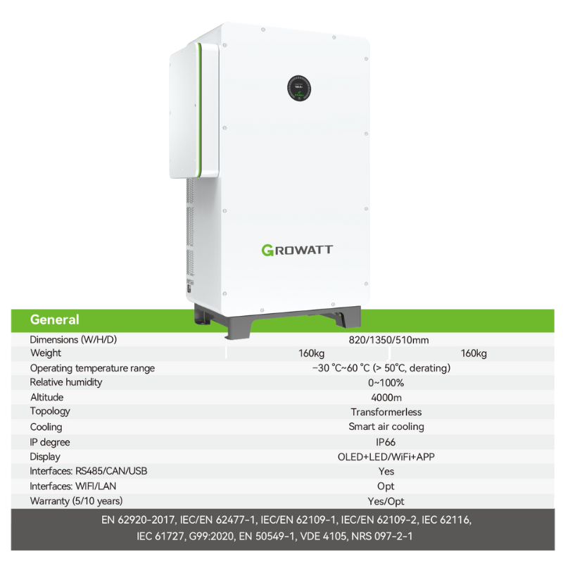 RS485, CAN, MODBUS TCP, Wi‑Fi/LAN холболттой бөгөөд Growatt ShineWiLAN‑X2, Monitoring platform –ээр дамжуулан онлайн хянах, удирдах боломжтой..